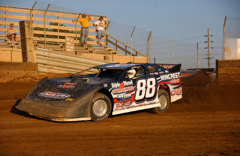 Wendell on the gas during the UMP DIRTcar Summer Nationals stop at the Belle Clair (IL) Speedway -